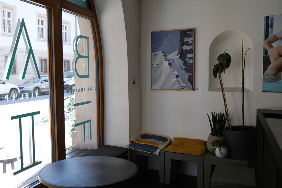 Seit April 2025 stelle ich einige meiner Kunstwerke in der Basefive in Innsbruck aus. Der Trainings- und Rehaort passt sehr gut zu meinen Bildern, die die Geschichten vom Berg, von der Bewegung, vom Abendteuer und vom Radreisen erzählen.
